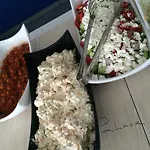 Palace Hotel beschikt ook over een gratis continentaal ontbijt. Voor de internationale keuken kan men terecht bij het à-la-carterestaurant Palace Food. De bar in het zwembad is voorzien van een karaoke en een tv.